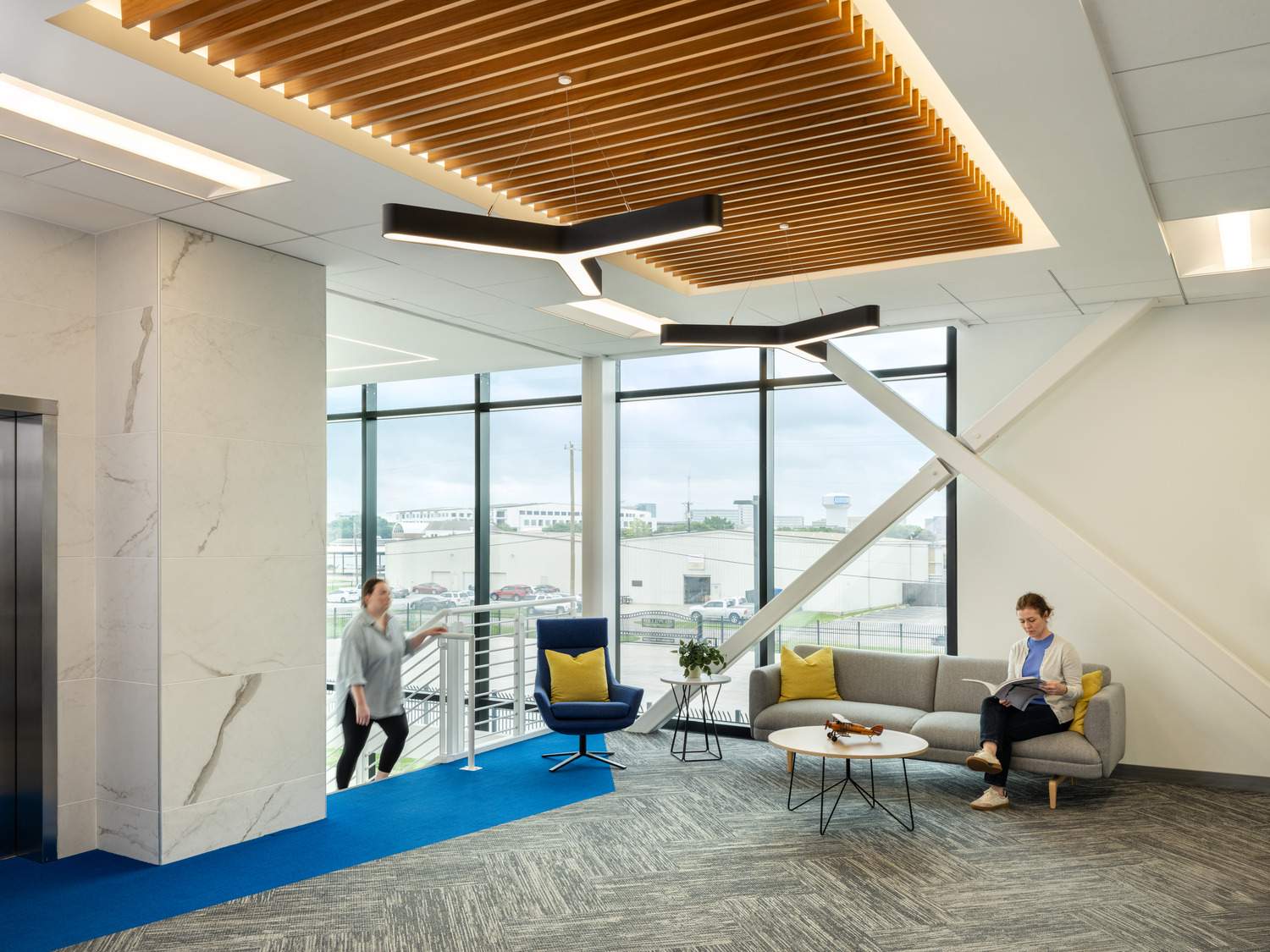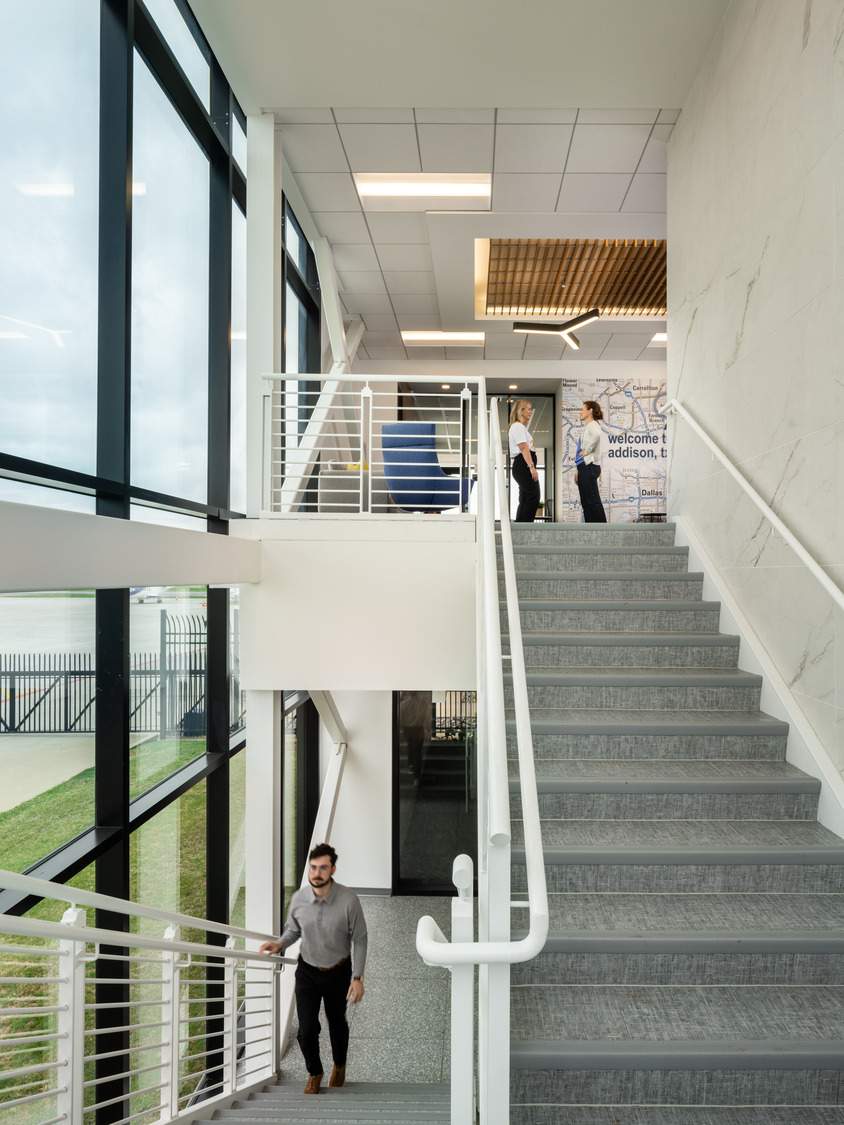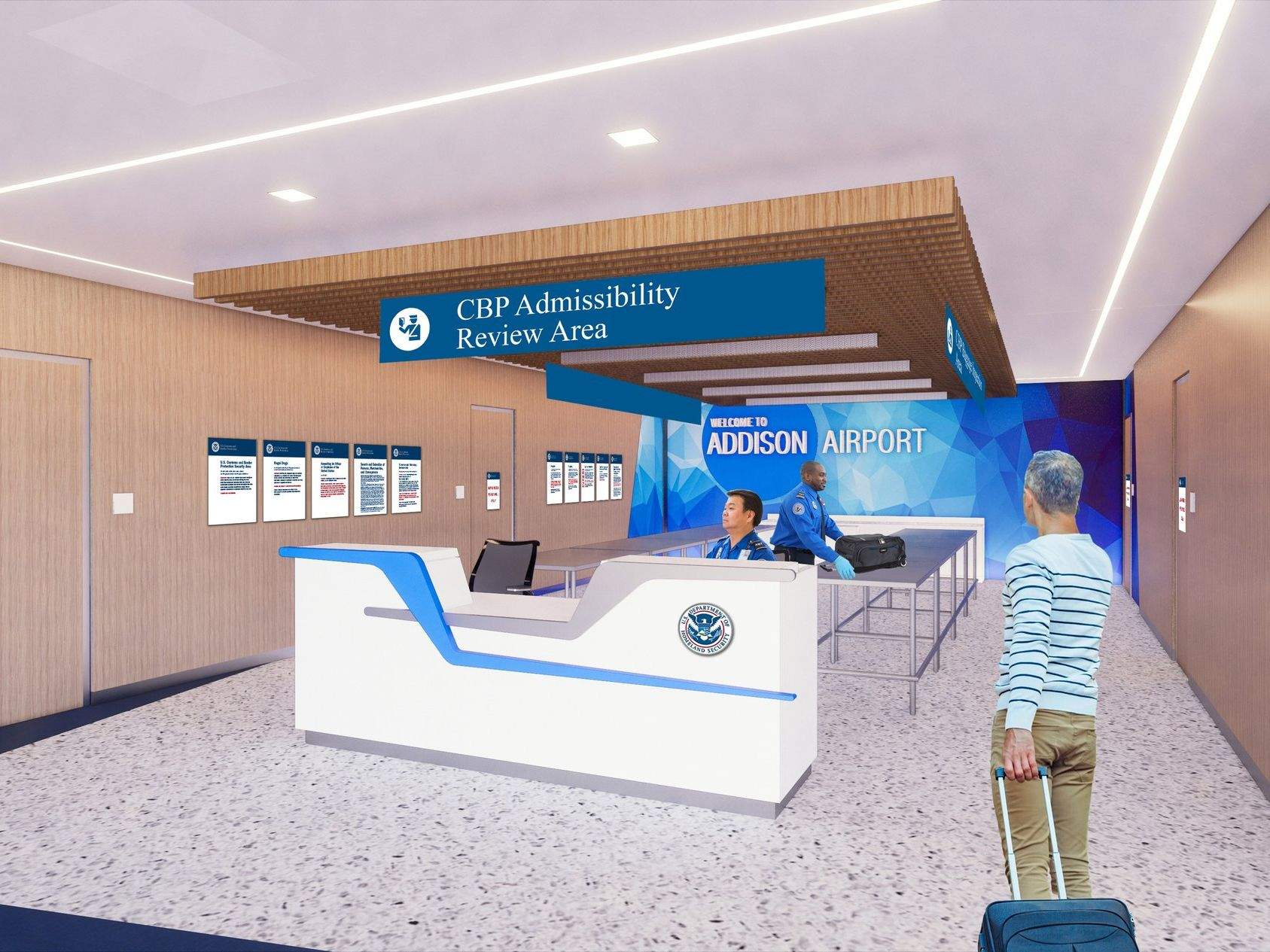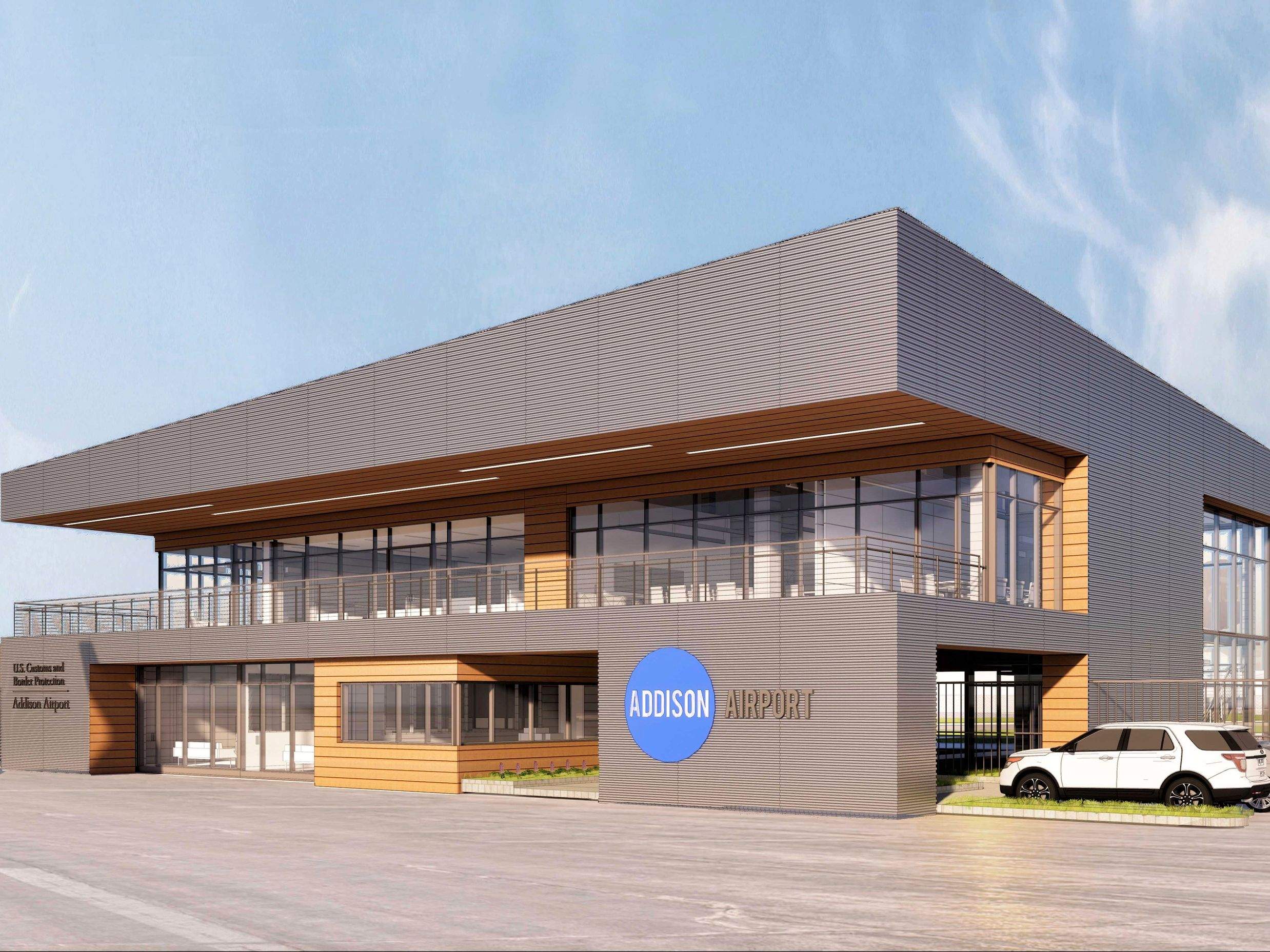 This 12,375-SF facility redefines Addison Airport as a hub for international business aviation. The ground floor Federal Inspection Services were designed for clarity and efficiency, balancing strict security with a more welcoming passenger experience through intuitive circulation, daylight, and durable finishes.