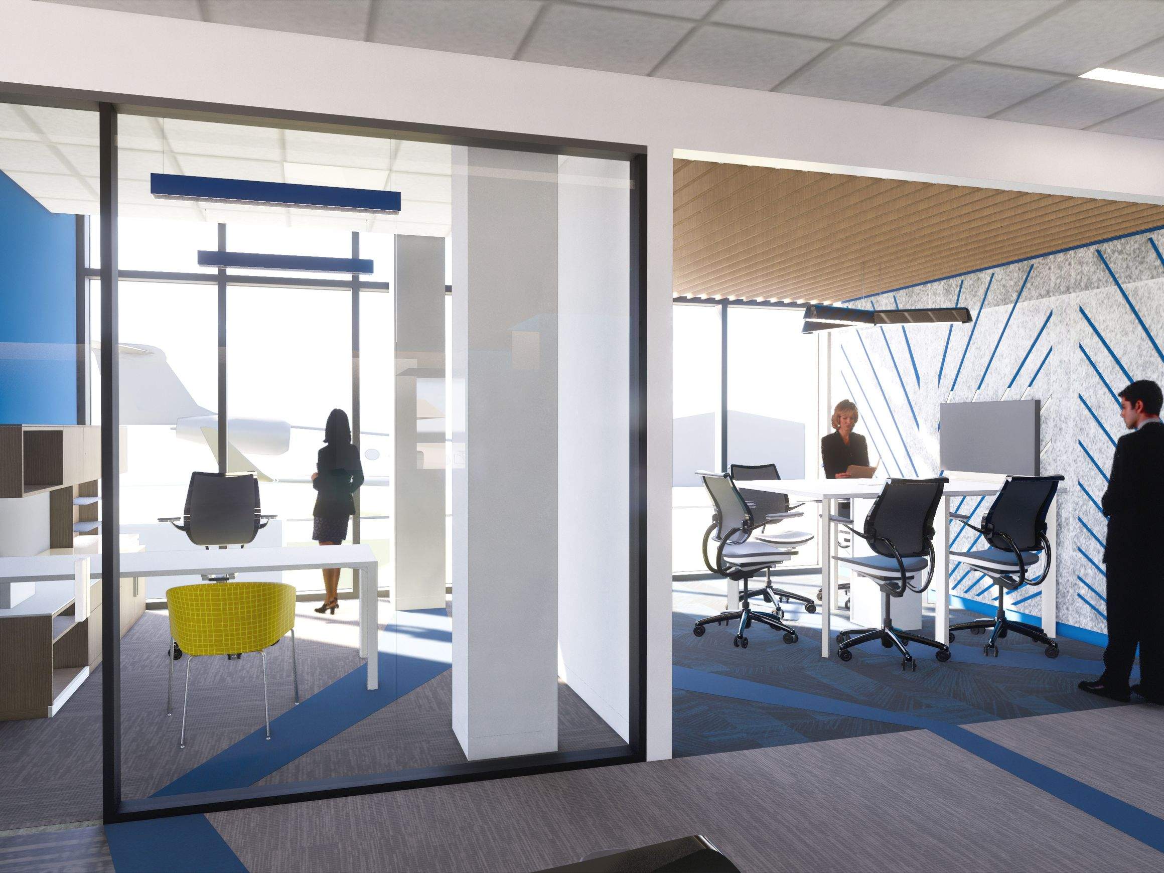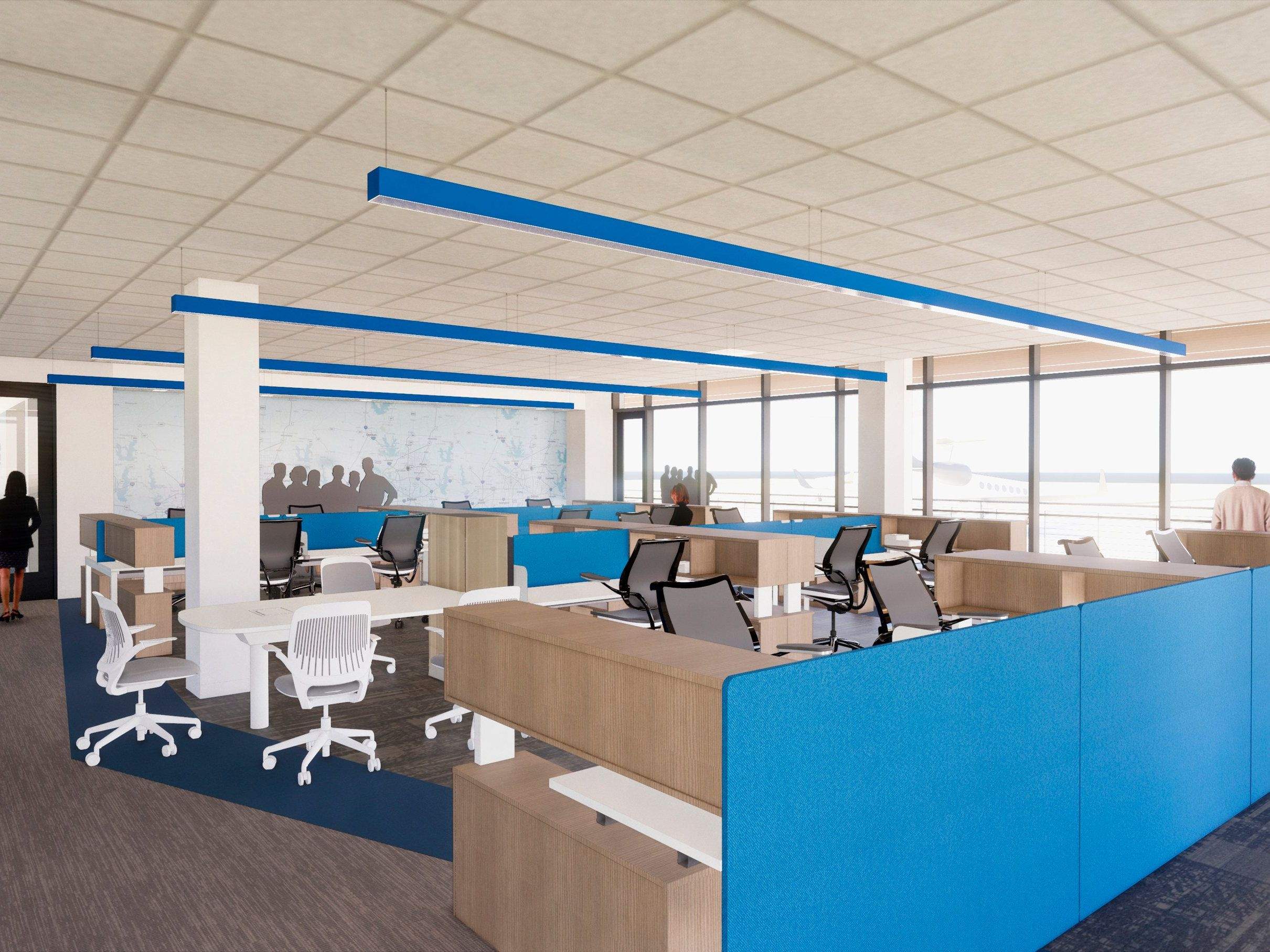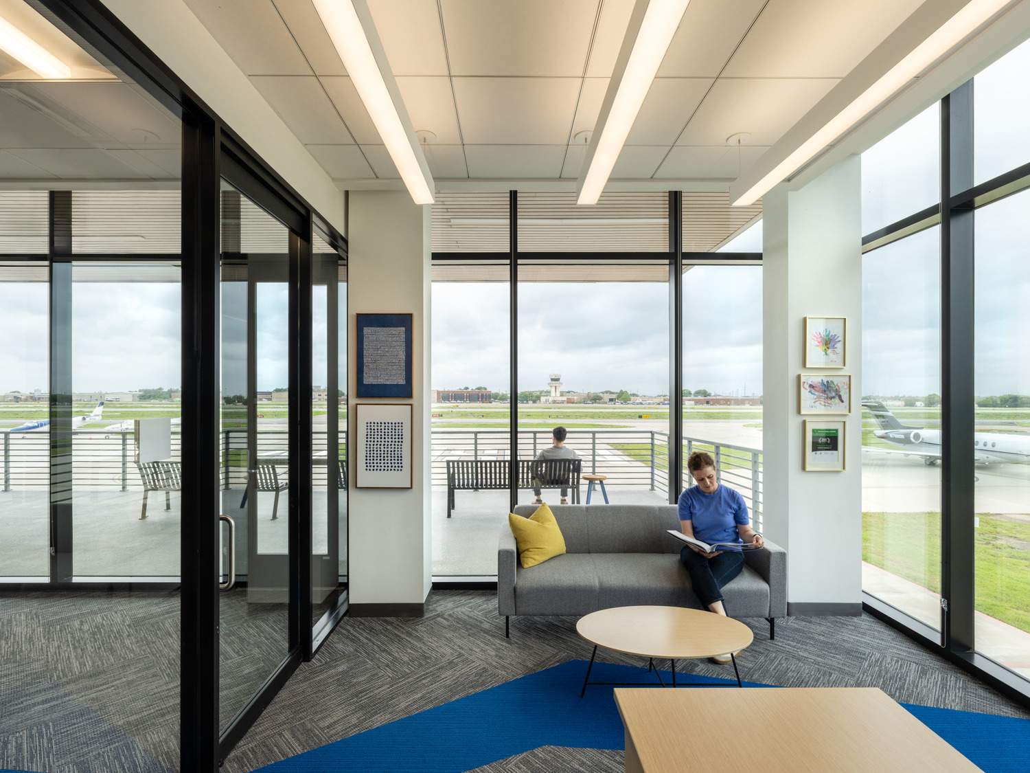 Private and team offices support airport management staff, including leadership, planning, real estate, finance, and operations. Spaces were planned for both individual focus and team collaboration, with daylight and views enhancing the work environment.