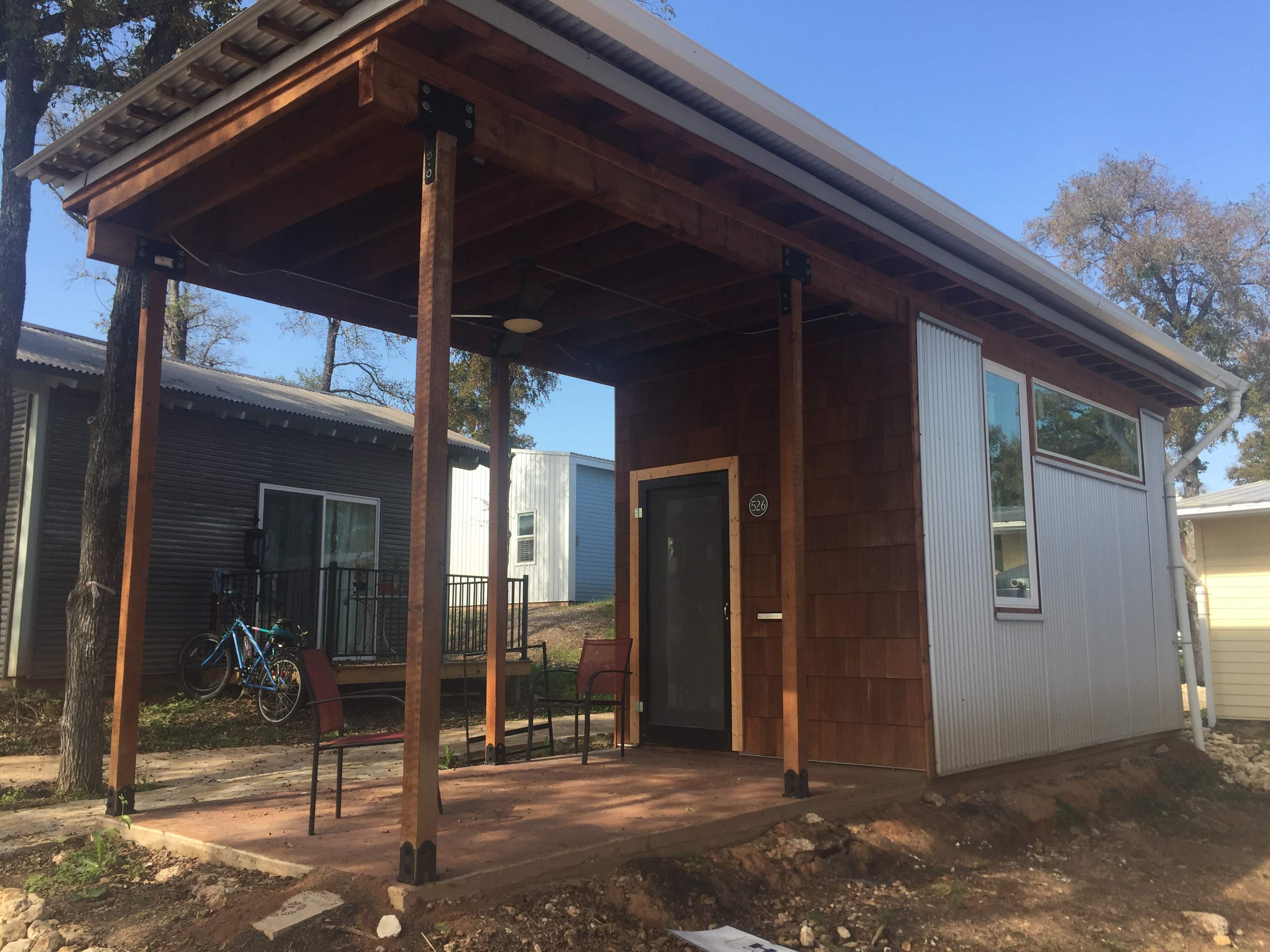 Compact living unit paired with a flexible, customizable porch for privacy, comfort, or community.