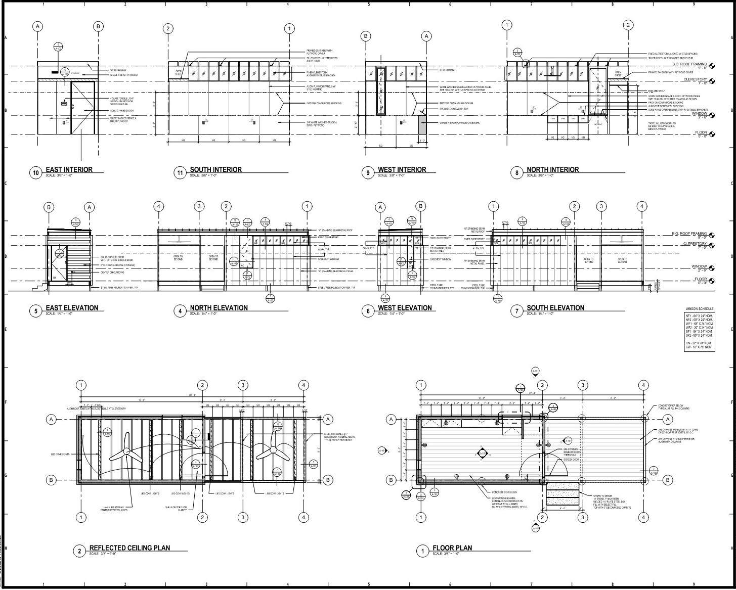 Clerestory windows and operable openings to provide daylight, ventilation, and connection to surroundings.