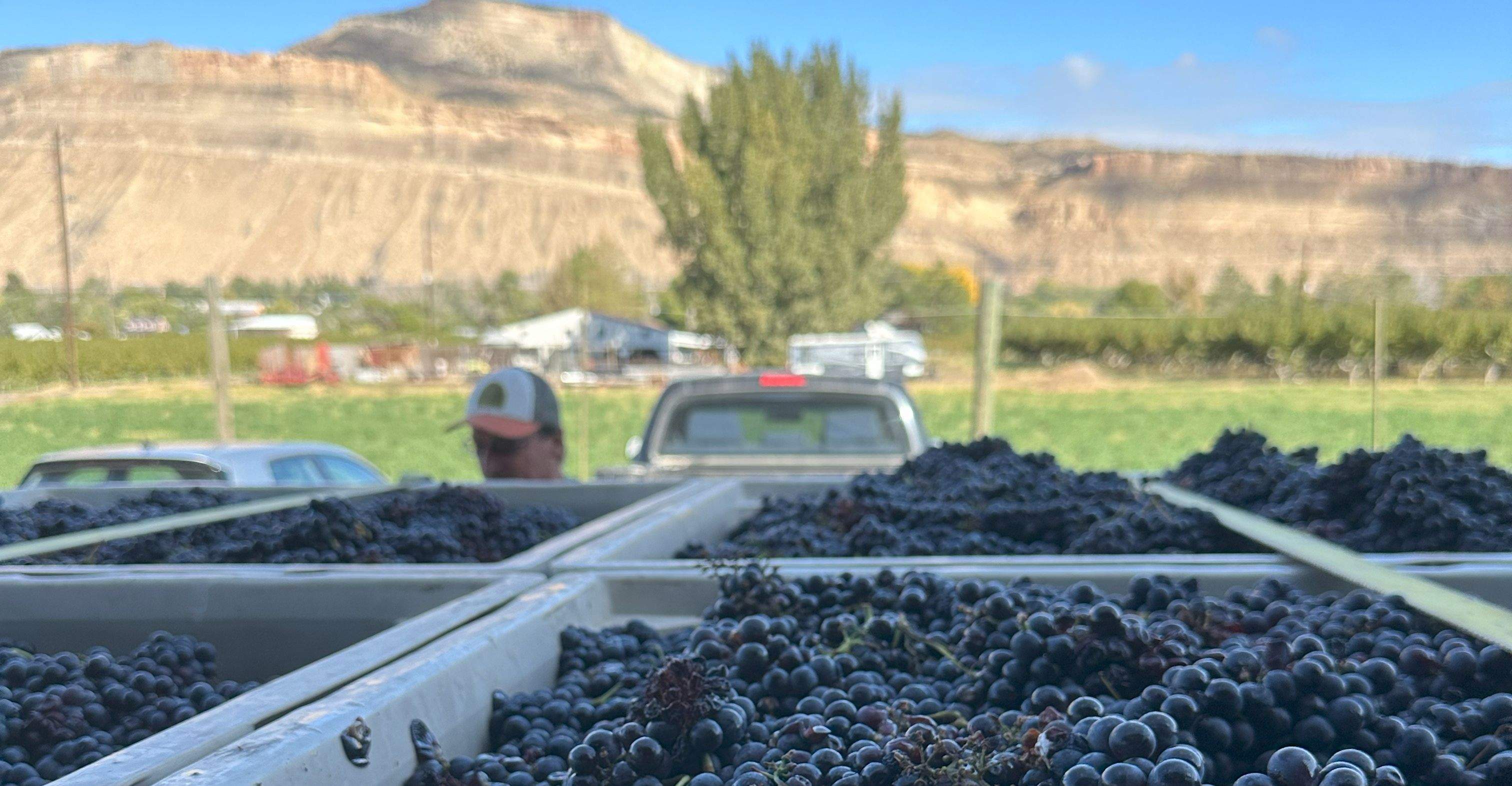 harvesting grapes / picking up grapes from growers