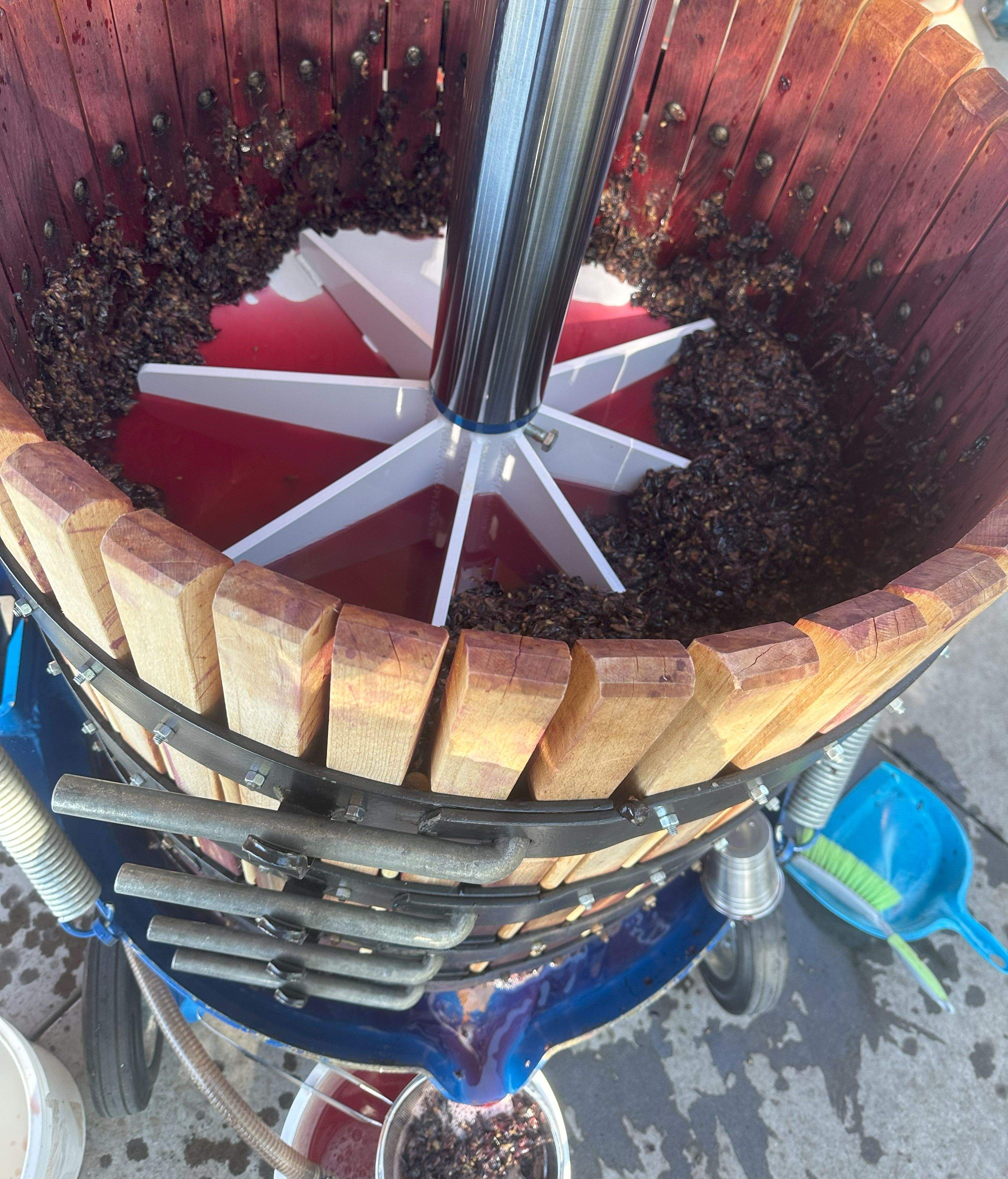 processing grapes (crush, de-stem, press, cold soak)
