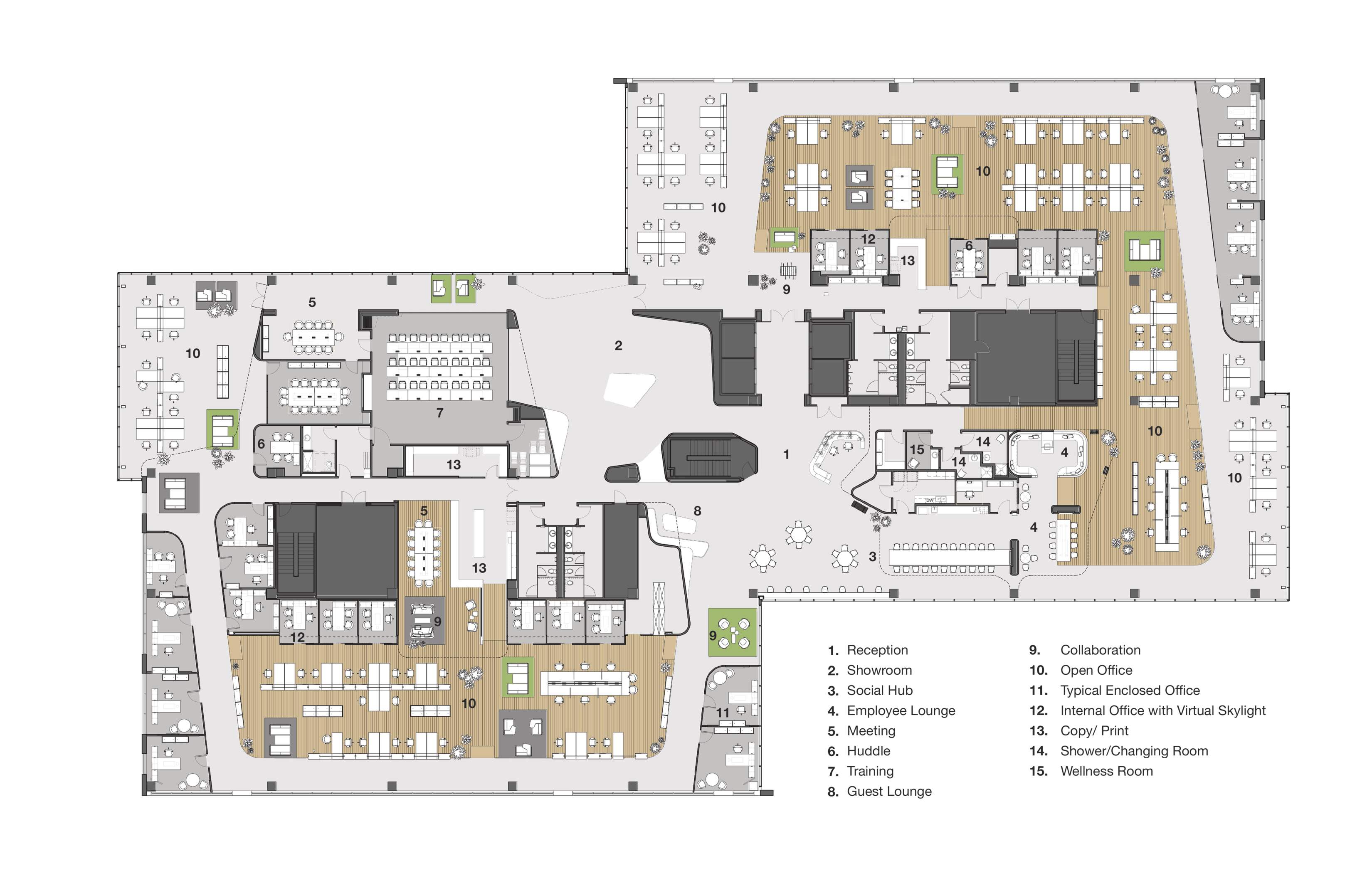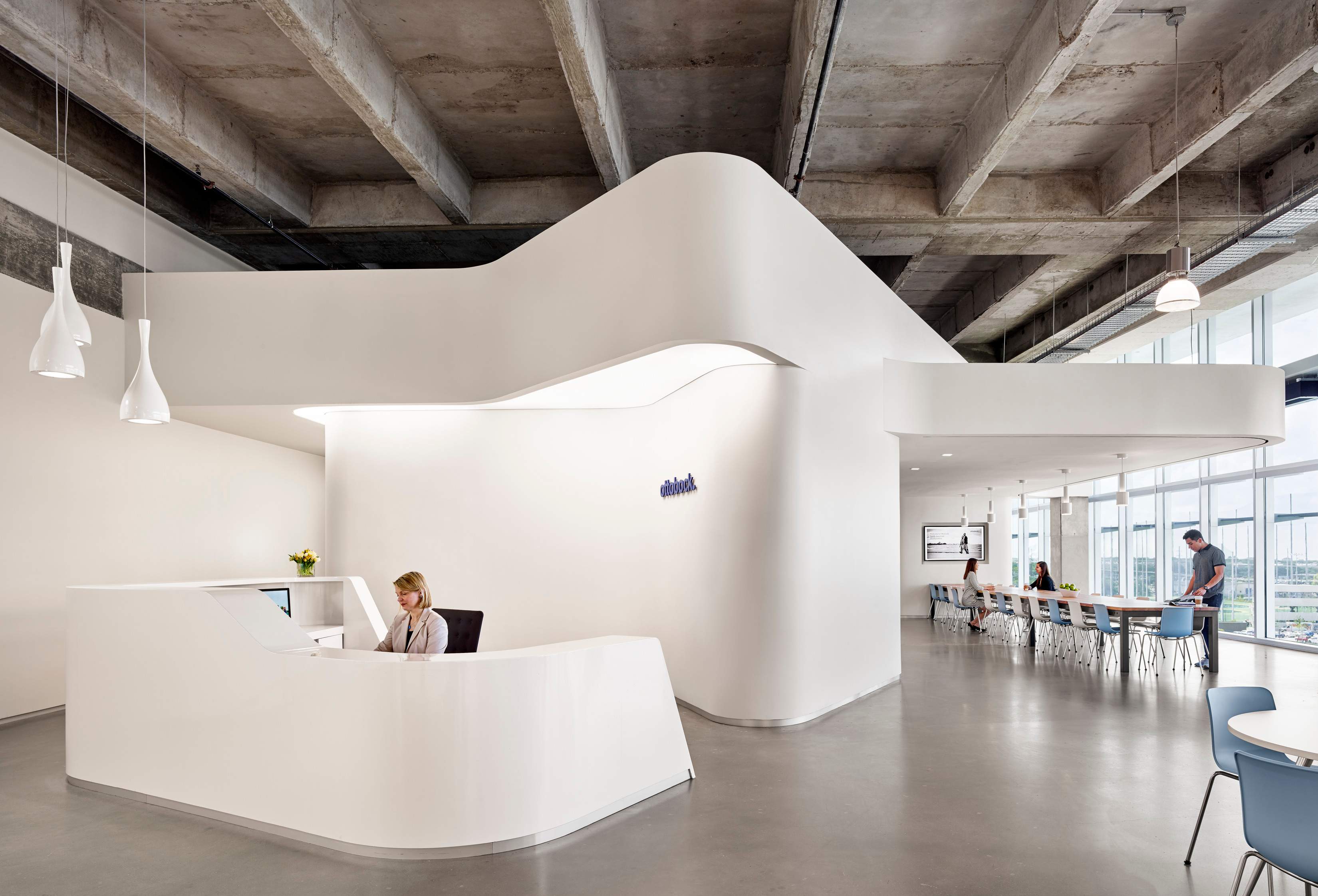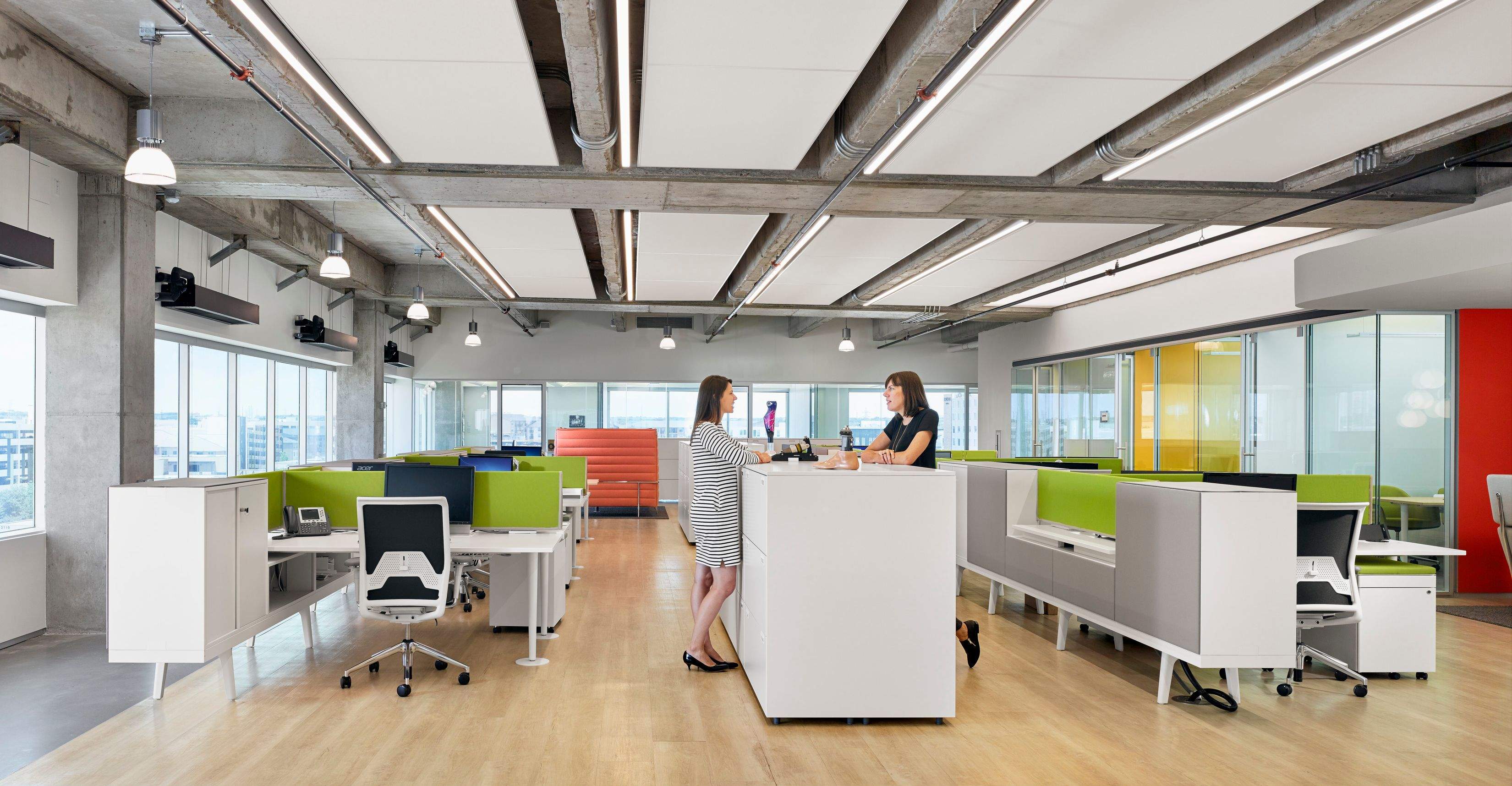 Coordinated with custom integrated slot diffusers on the fascia, floor diffusers and floor electrical boxes for flexible furniture solutions.