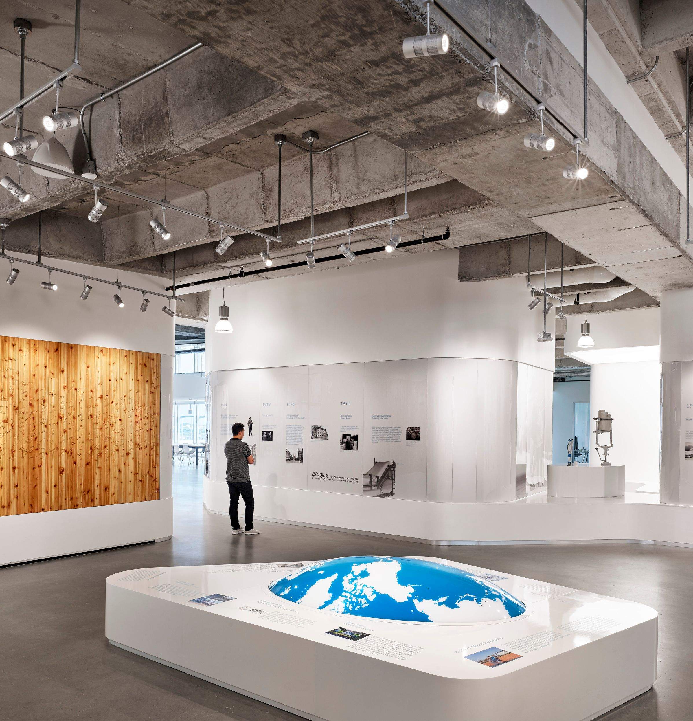 The office extends beyond traditional work zones to promote innovation and interaction. A striking product showcase and a lively communal area known as the social hub, centered around a 30-foot pecan table handcrafted by local artisans, create moments of connection. A flexible raised floor system and exposed concrete ceilings express a modern, adaptable character.