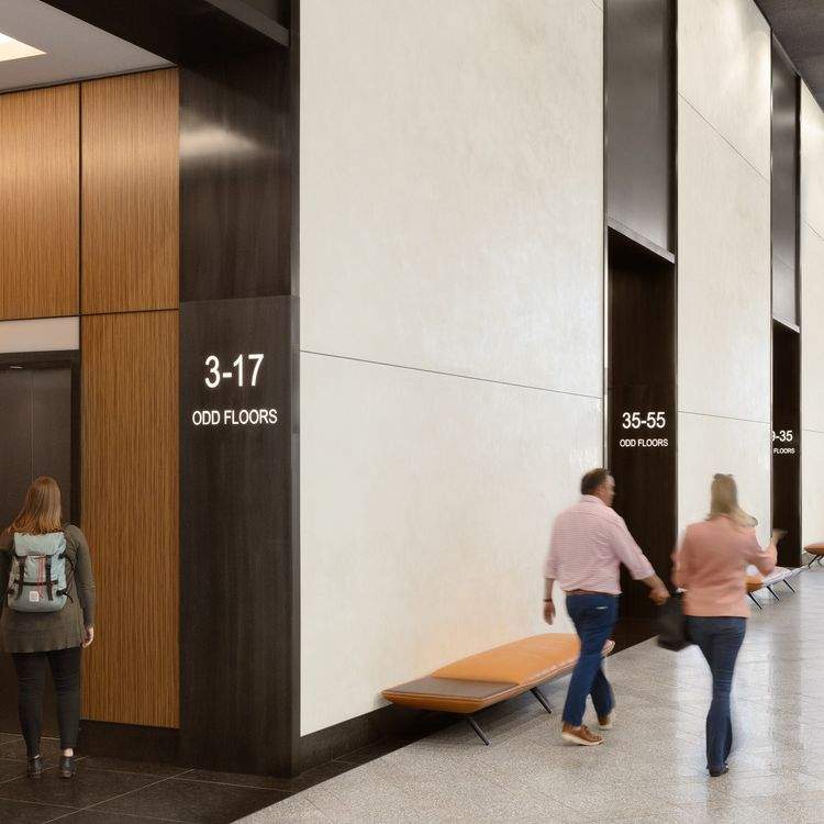 The Republic Plaza lobby renovation in Denver redefines the arrival experience for the city’s tallest office tower with a bold yet refined design. More than 20,000 square feet of interior space was reimagined with a sculptural terracotta feature wall, a 30-foot programmable LED chandelier, and re-clad elevator cores that emphasize scale and verticality.