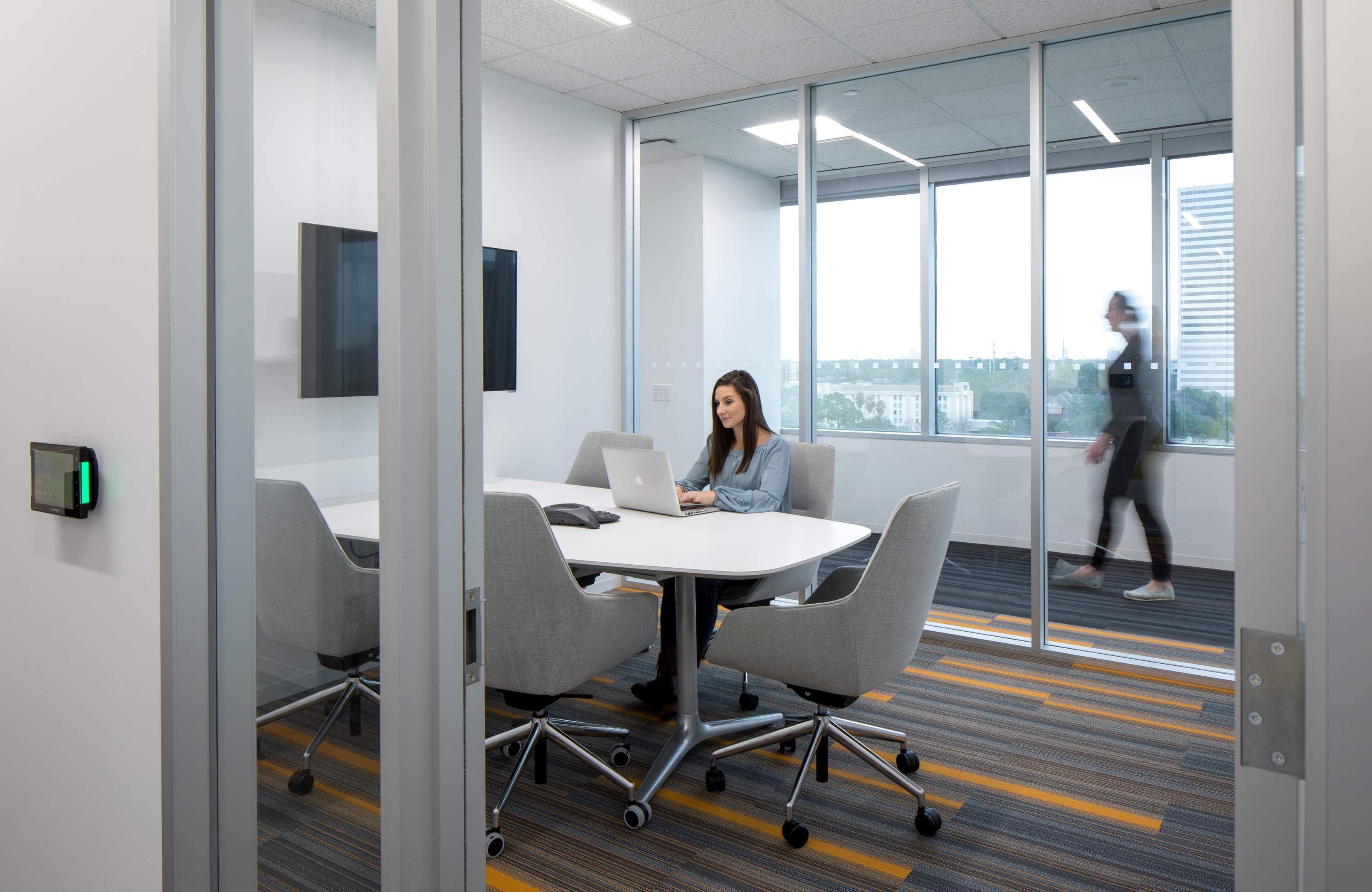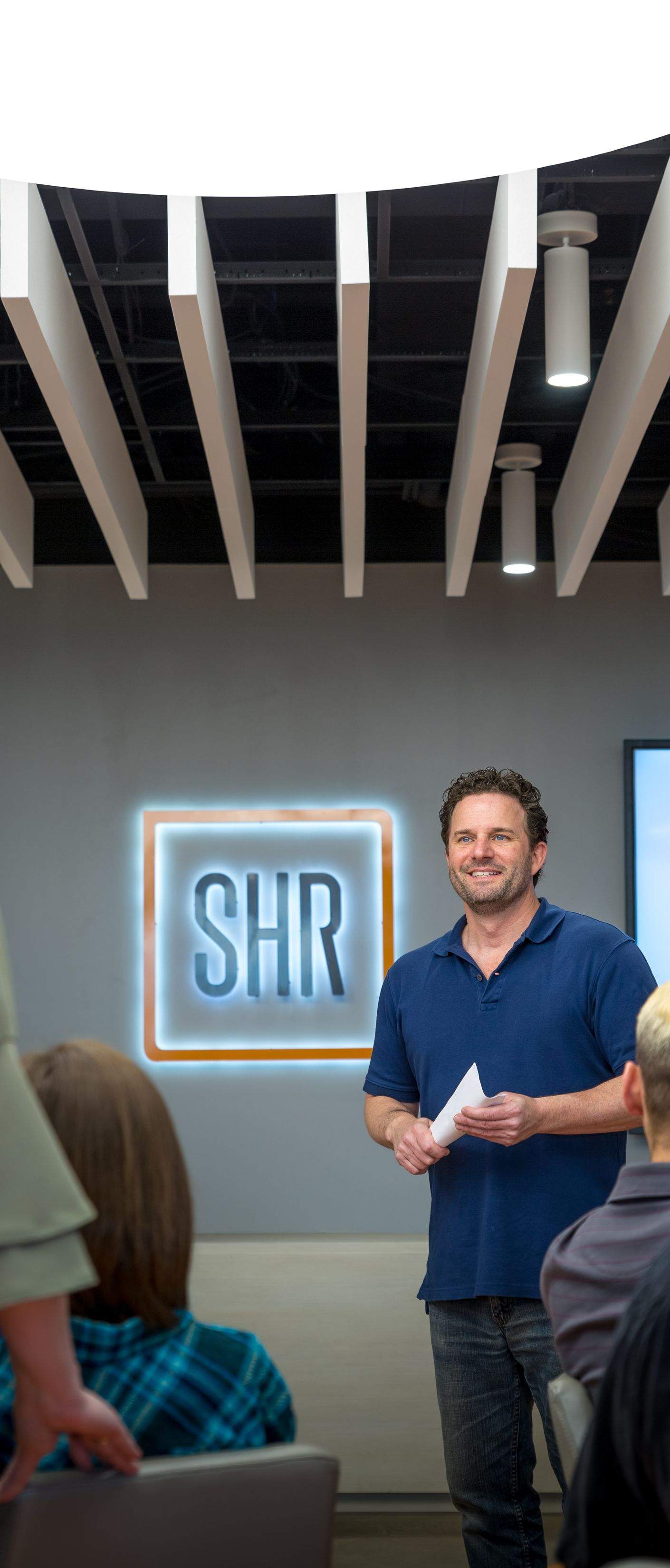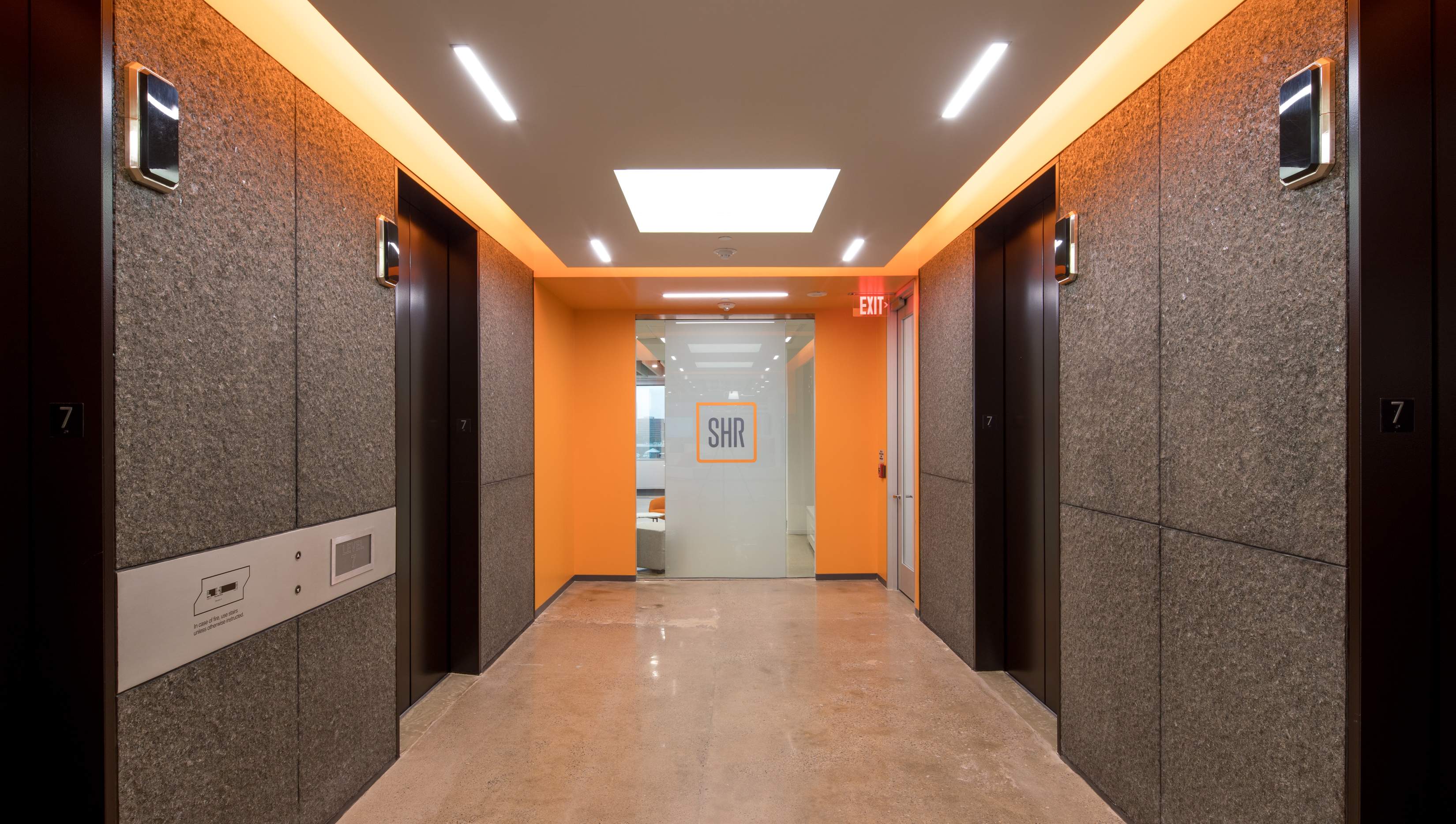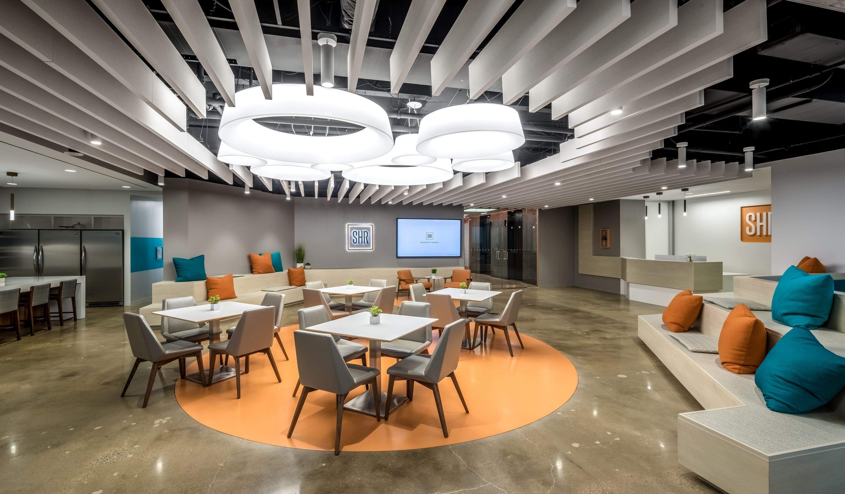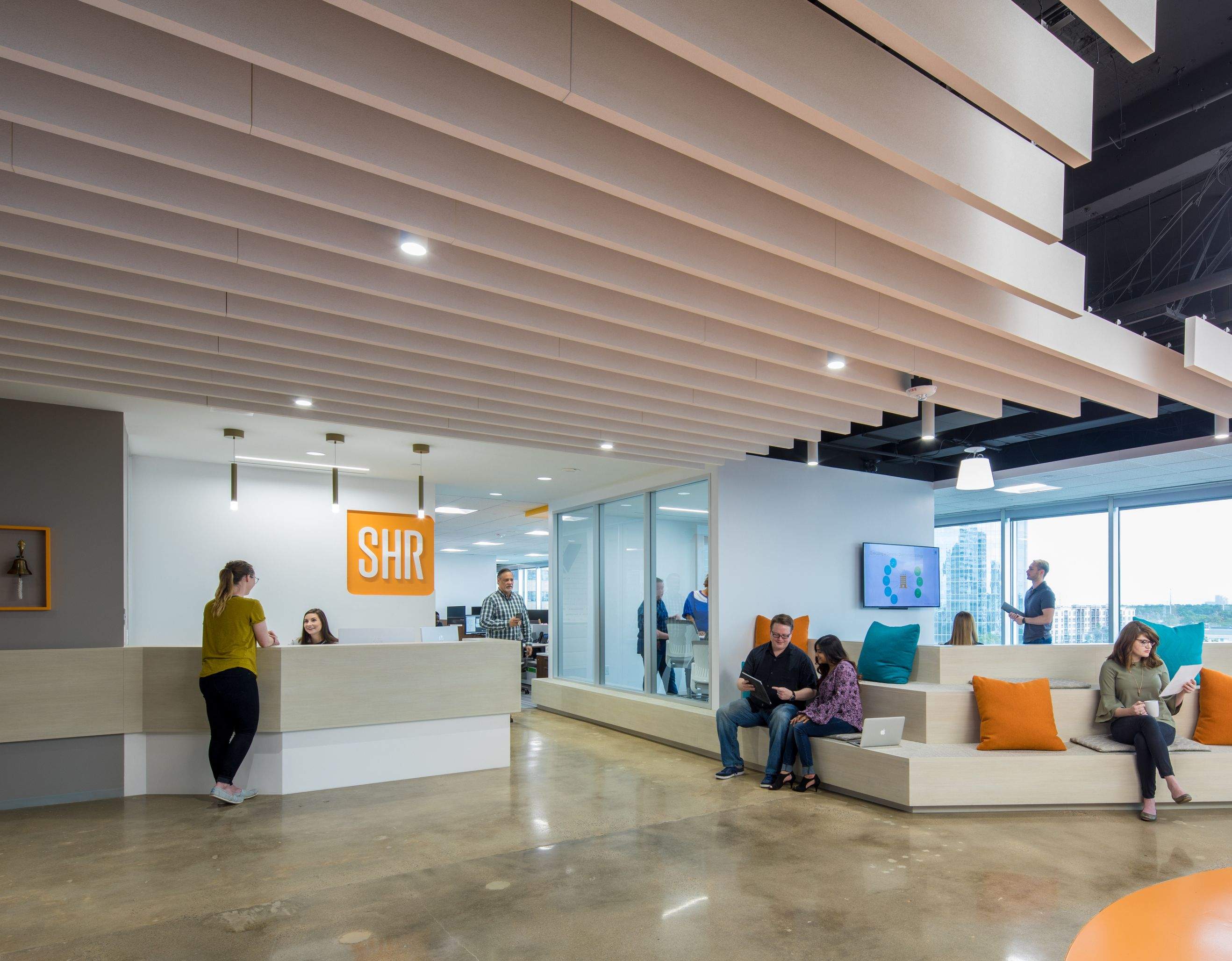 Sceptre Hospitality Resources (SHR), now part of the Access Group, expanded its Galleria office in 2017 to support a rapidly growing team. The design focused on creating furniture solutions that embodied their culture while providing flexibility for future growth. The concept was anchored in collaboration and energy, expressed through bold environmental graphics, layered textures, and adaptable furniture systems.