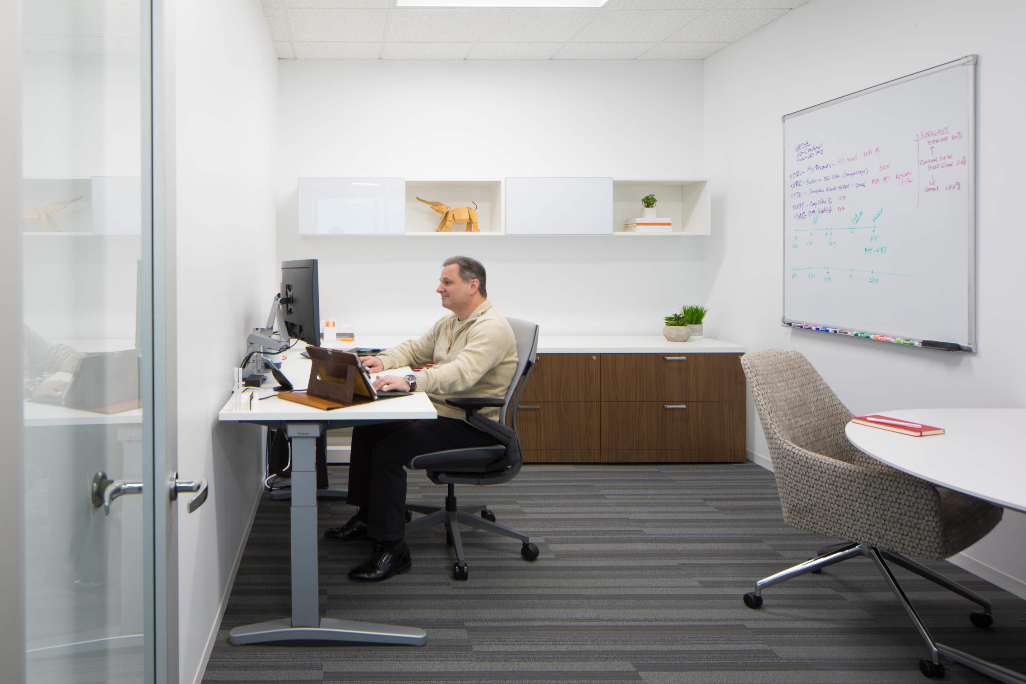 The open office desking was planned with a focus on ergonomics and employee well-being, balancing transparency with comfort. Private offices integrated ample storage while also serving as flexible enclaves for focused work or one-on-one collaboration.